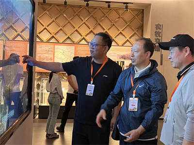 “學習強國”各省區(qū)市的編輯記者們參觀不同面貌的黃河展廳。(來源:包頭市融媒體中心)