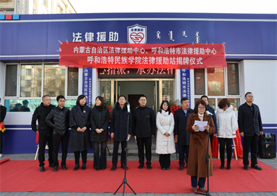 儀式上,呼和浩特民族學(xué)院副院長(zhǎng)、自治區(qū)法律援助中心主任共同為法律援助工作站揭牌。