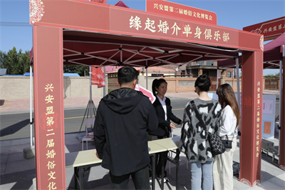 老物件展示區(qū)藏著不同年代的婚禮記憶,吸引眾多群眾打卡拍照;單身青年聯(lián)誼活動(dòng)區(qū)人氣十足,青年們?cè)谙嘤H角認(rèn)真記錄著心儀對(duì)象的信息。